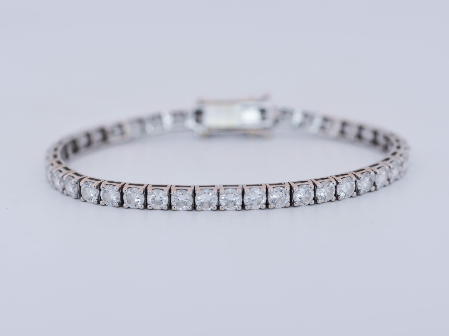 Prachtige Riviera-armband, bezet met 39 briljantgeslepen diamanten met een totaalgewicht van circa 10 karaat.