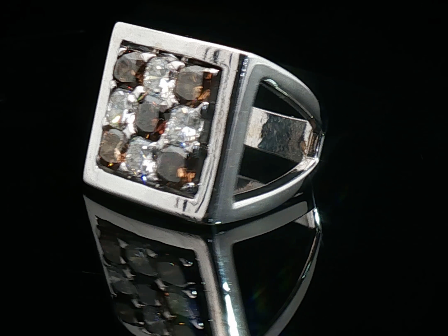Exclusieve ring juwelier Quijo bezet met 4 witte diamanten radiant geslepen en 5 brownish diamanten radiant geslepen