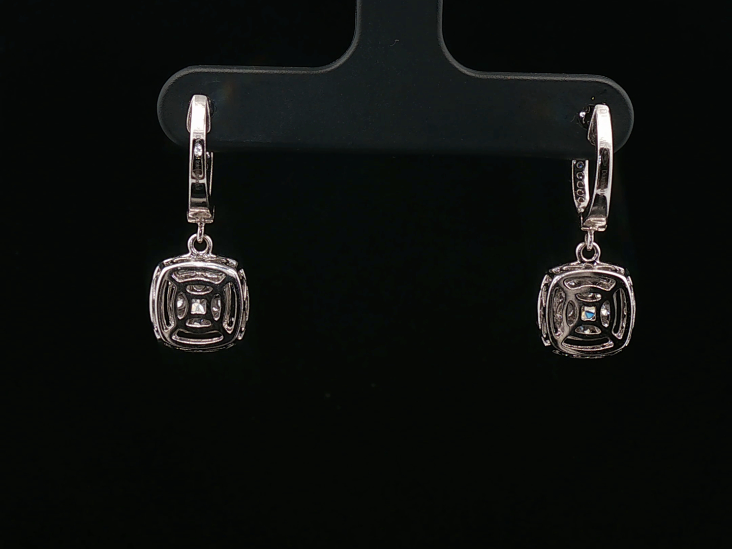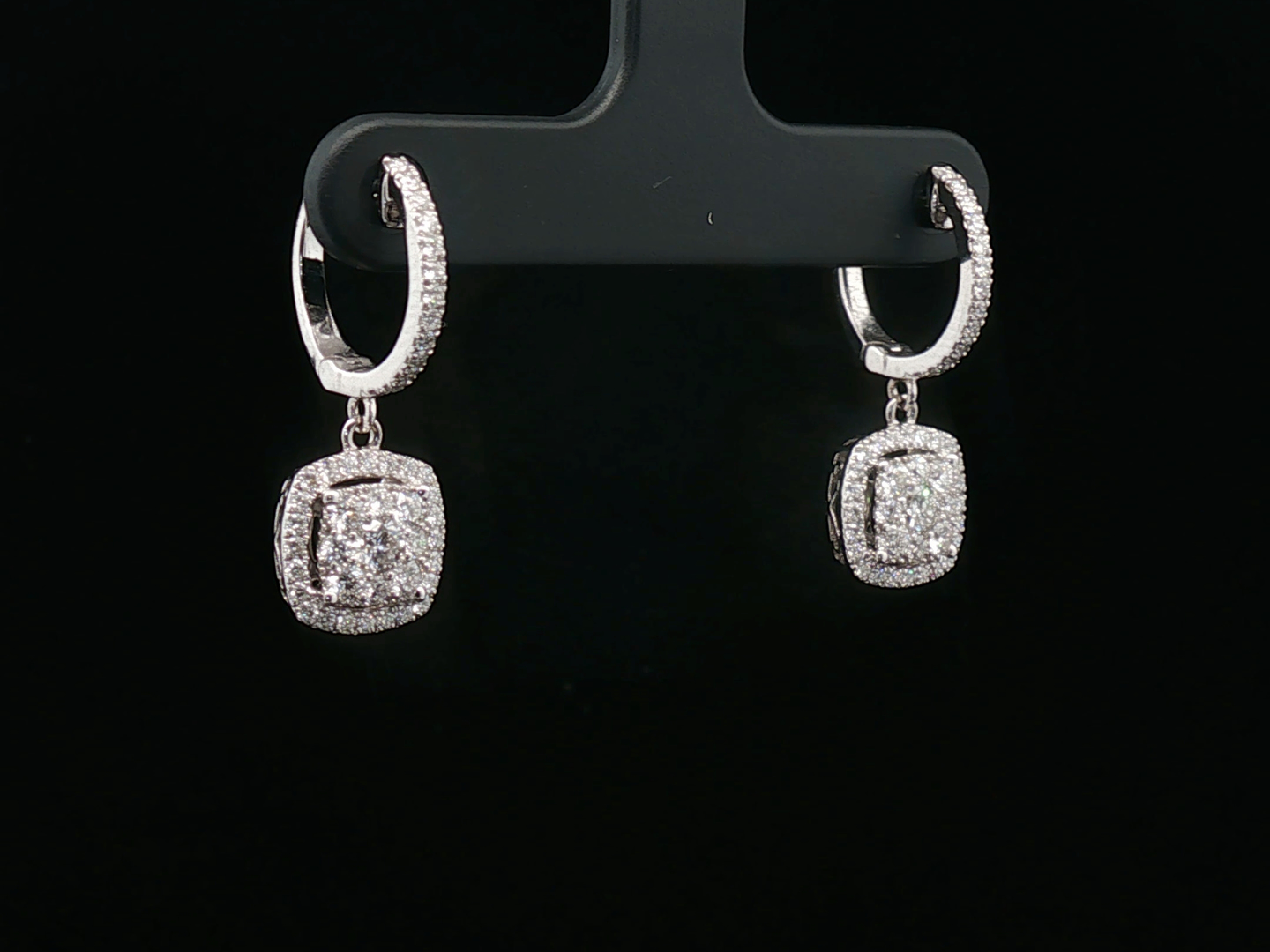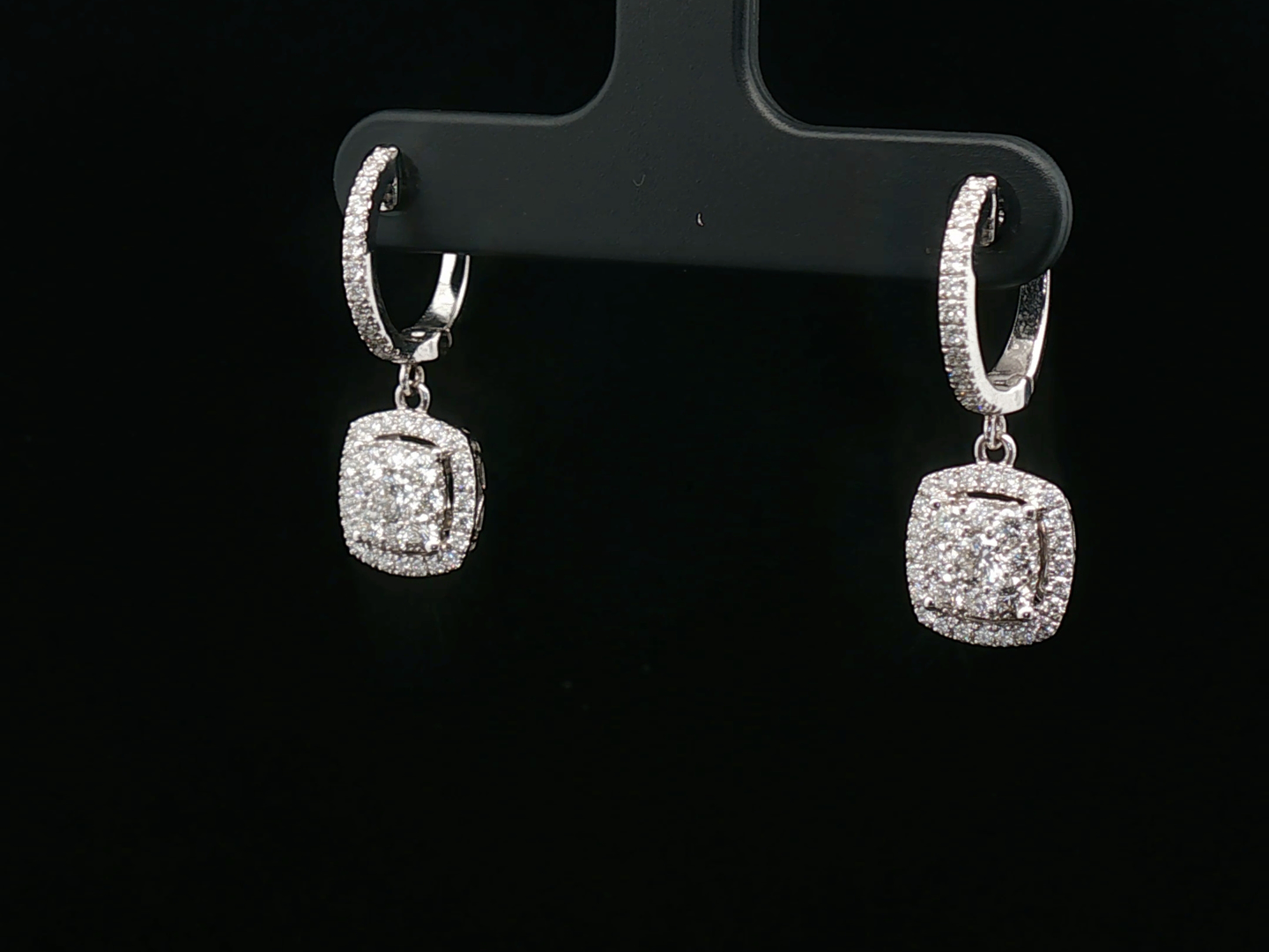 Paar elegante oorhangers bezet met 94 witte diamanten briljant geslepen in totaal +- 1.60ct. kleur: F-G en zuiverheid: VS-SI ingezet in wit goud 18k. lengte oorbel +- 24 mm.