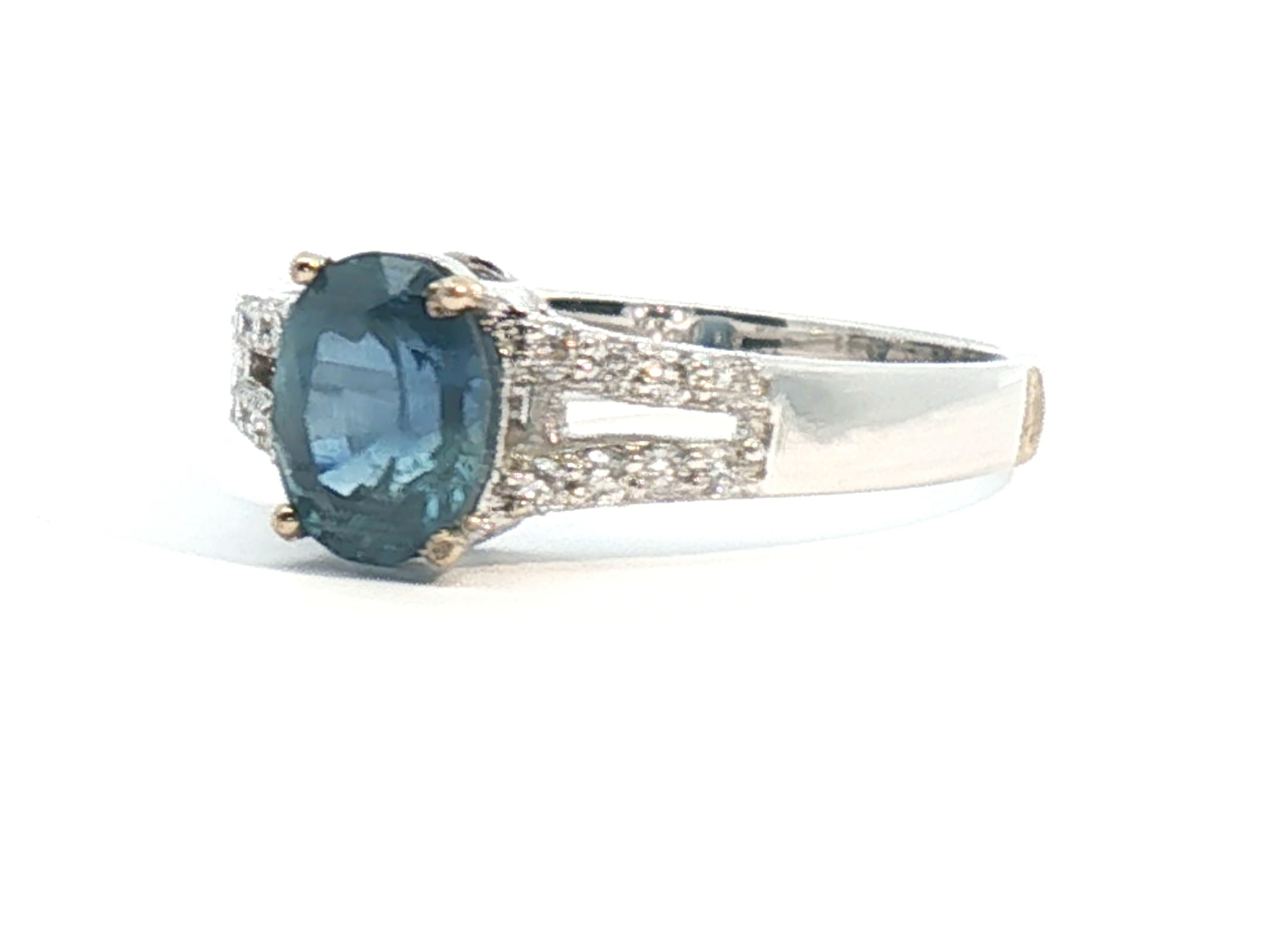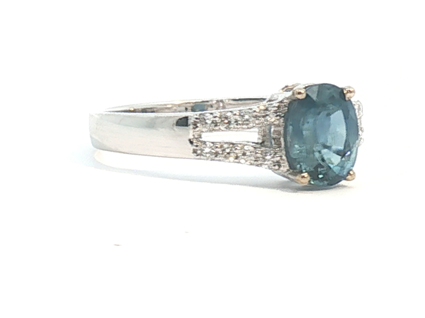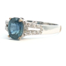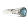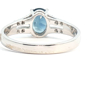 Fijne ring bezet met 1 saffier light blue transparant van +-0.75ct, omringd door 16 kleine briljanten