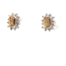 paar fijne oorbellen bezet met 2 citrines: +-0.50ct, omringd door 24 kleine briljanten