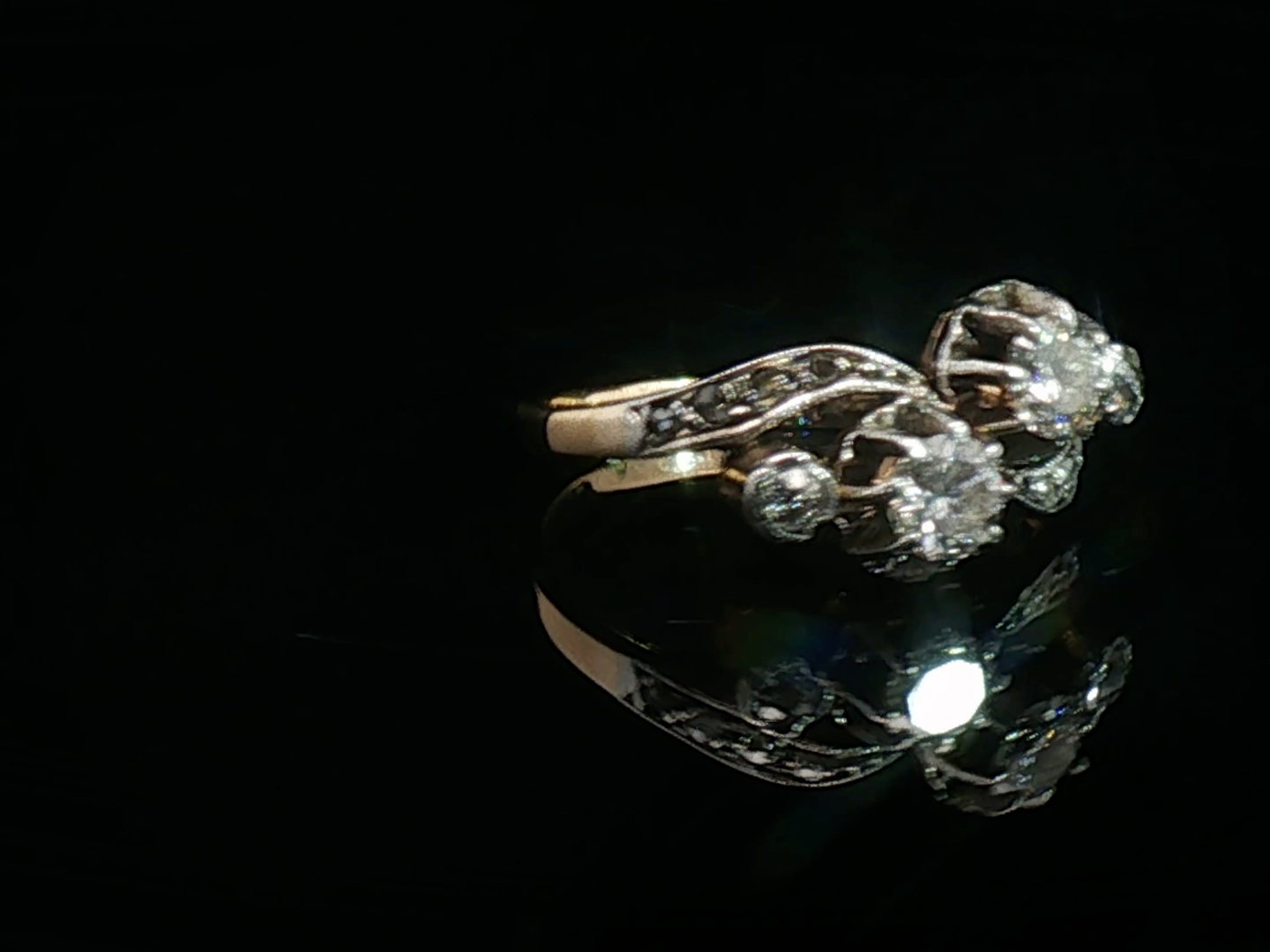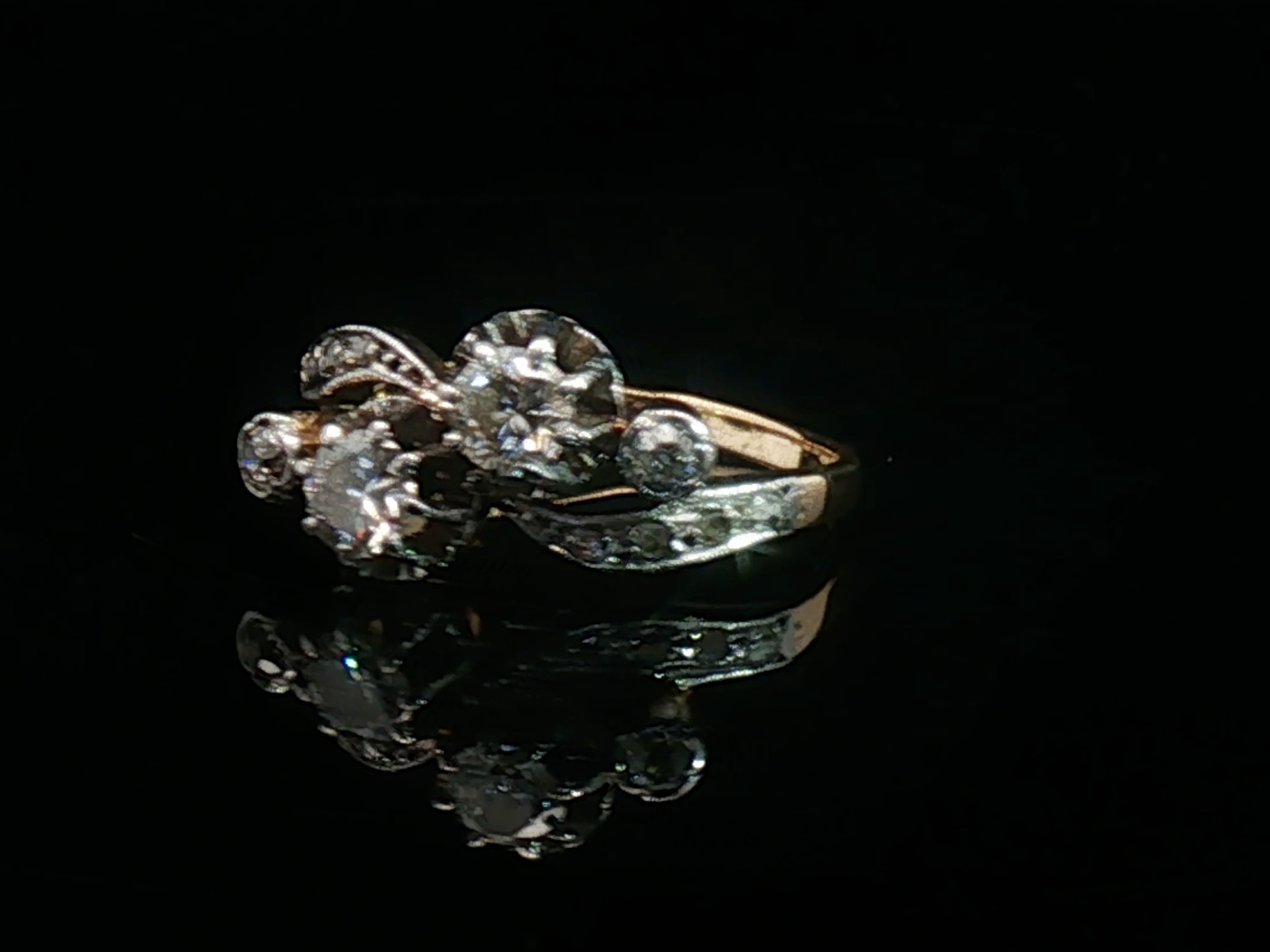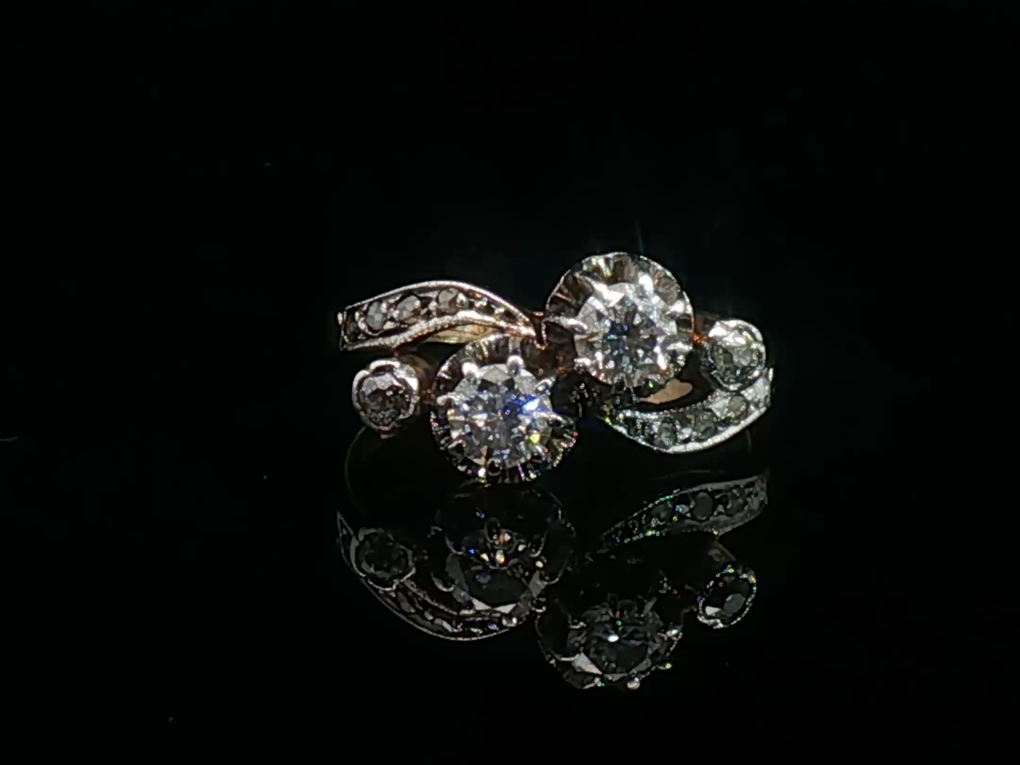 Antieke ring (toi et moi) Victoriaans circa 1880 bezet met 12 witte diamanten oude slijp 0.80ct.