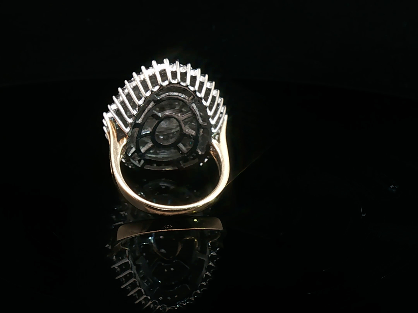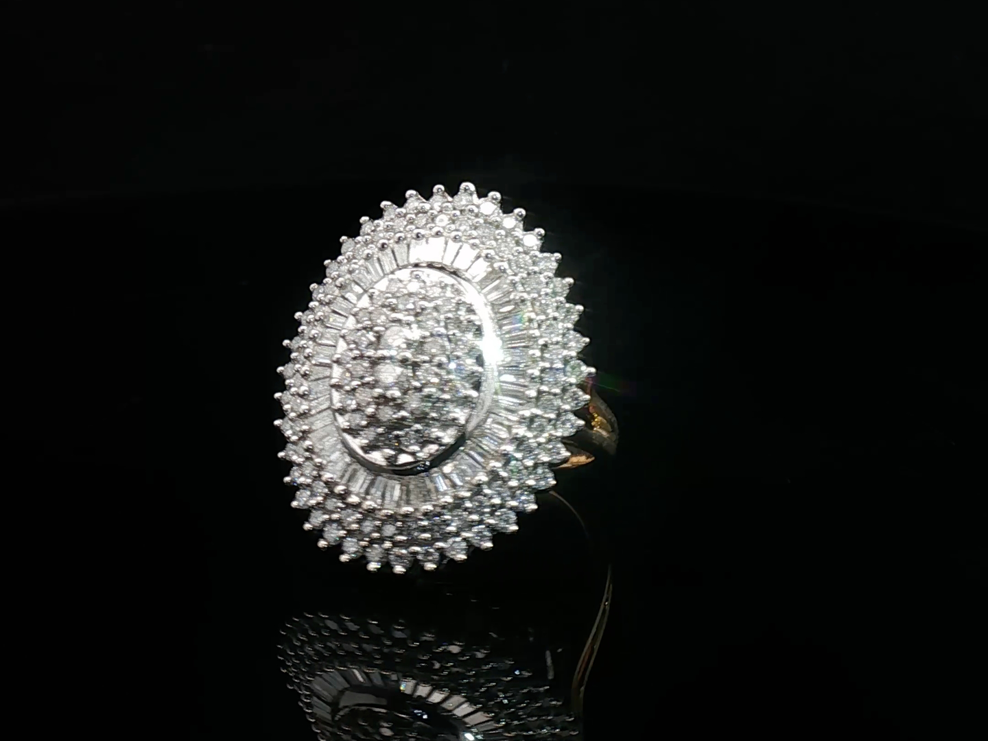 Grote sublieme ring bezet met witte diamanten briljant en baguette geslepen in totaal +- 3.00ct. ingezet in wit en geel goud 18kt. ringmaat: 52-55 gewicht: +- 9,80 gram