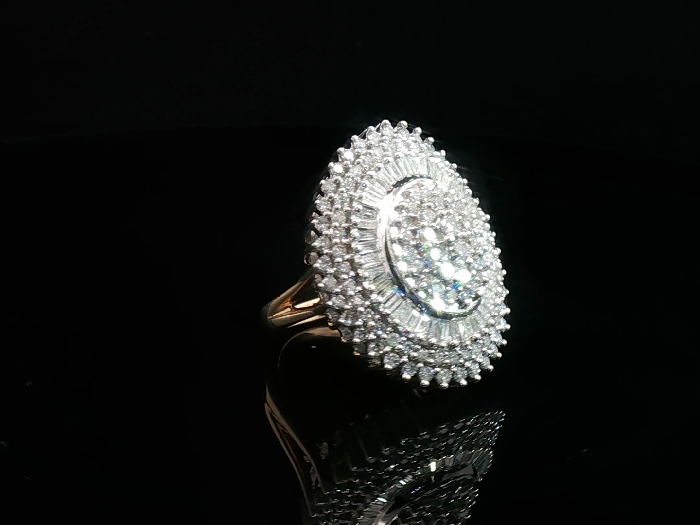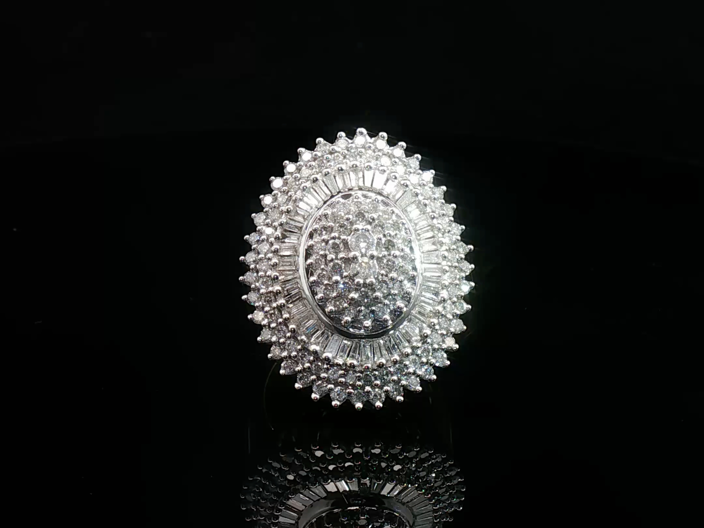 Grote sublieme ring bezet met witte diamanten briljant en baguette geslepen in totaal +- 3.00ct.