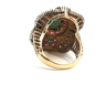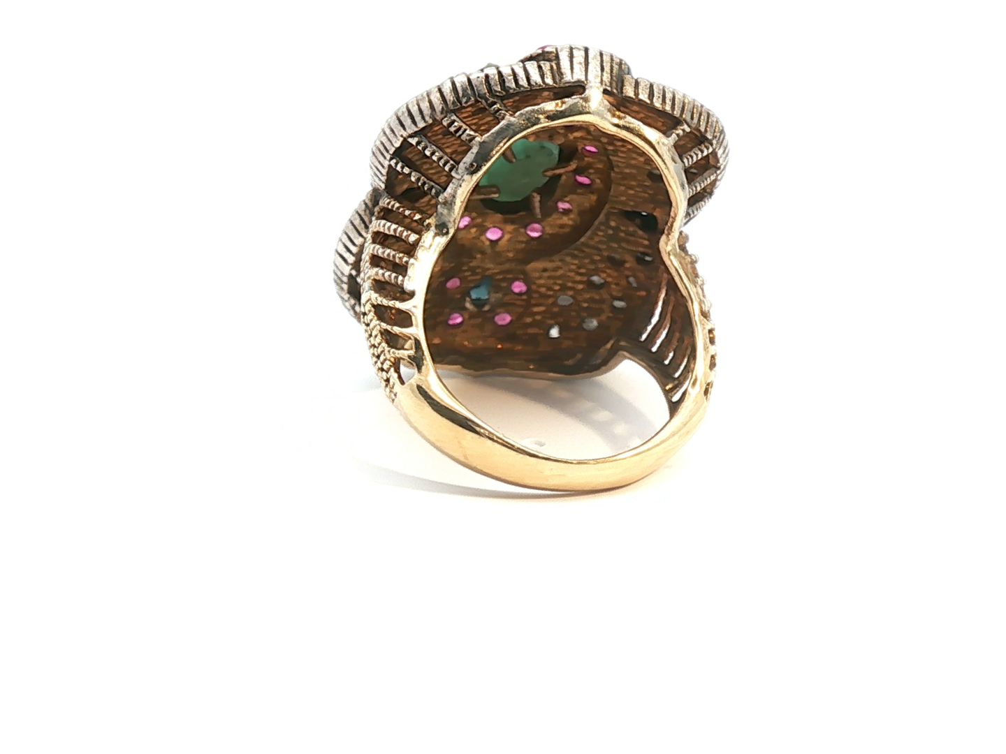 Antieke Napoleon III ring circa 1880 bezet met 1 smaragd + 20 robijnen + 4 saffieren + 32 diamanten oud slijp ingezet in geel goud 18kt. en zilver ring +- 30 mm. op 24 mm. gewicht: +- 12,50 gram