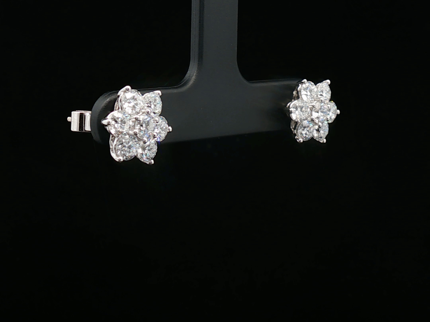 Paar sublieme oorbellen bezet met 14 witte diamanten briljant geslepen, totaal: +-2.40ct