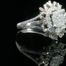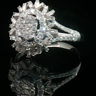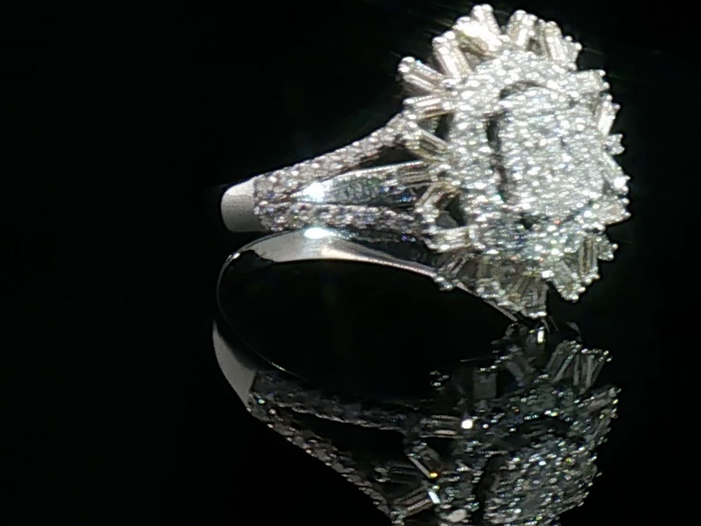 Fijne ring bezet met witte diamanten: 64 briljanten + 24 baguette geslepen + 2 prinses geslepen