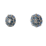 Paar modieuze oorbellen bezet met 32 ceylon saffieren: 3.70ct (gemerkt) + witte diamanten: 12 baguette en 48 briljant geslepen