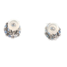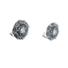 Paar modieuze oorbellen bezet met 32 ceylon saffieren: 3.70ct (gemerkt) + witte diamanten: 12 baguette en 48 briljant geslepen, kleur: D-E-F en zuiverheid: VS-SI. Ingezet in wit goud 18kt (gemerkt 750). Ringmaat: 53-55 en diameter ring: +-17mm