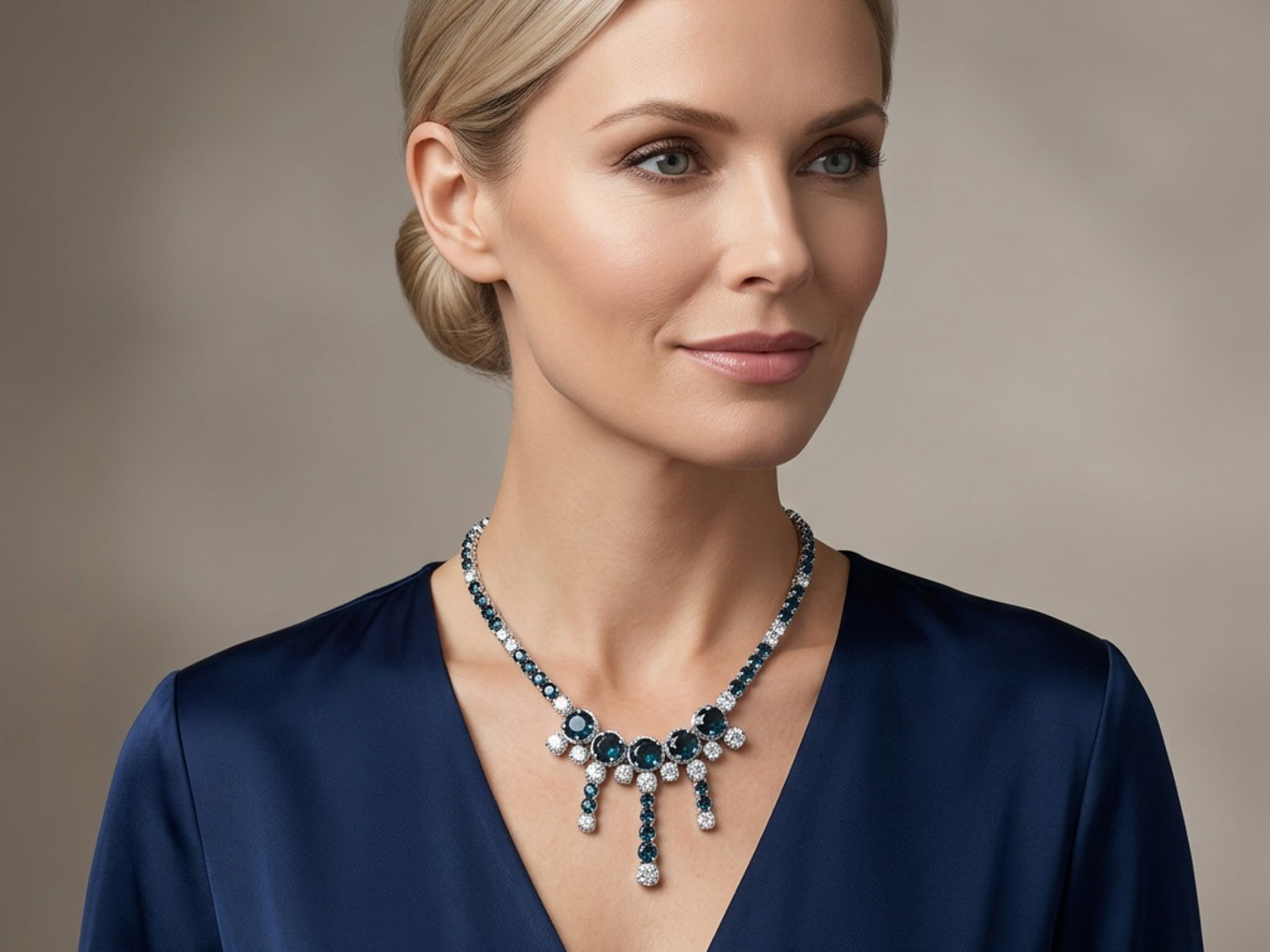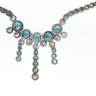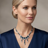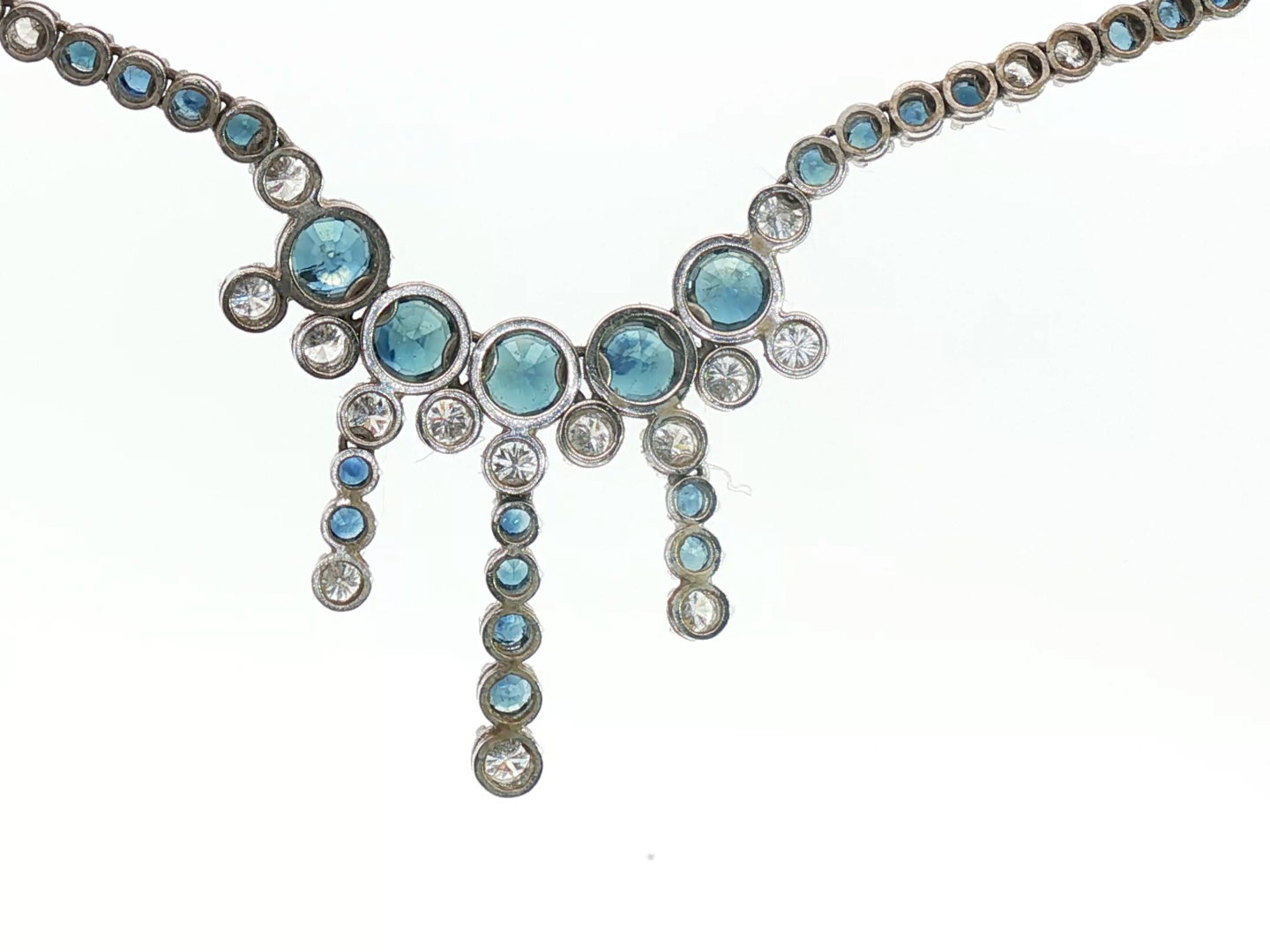 Halsketting bezet met 44 witte diamanten briljant geslepen + 129 saffieren