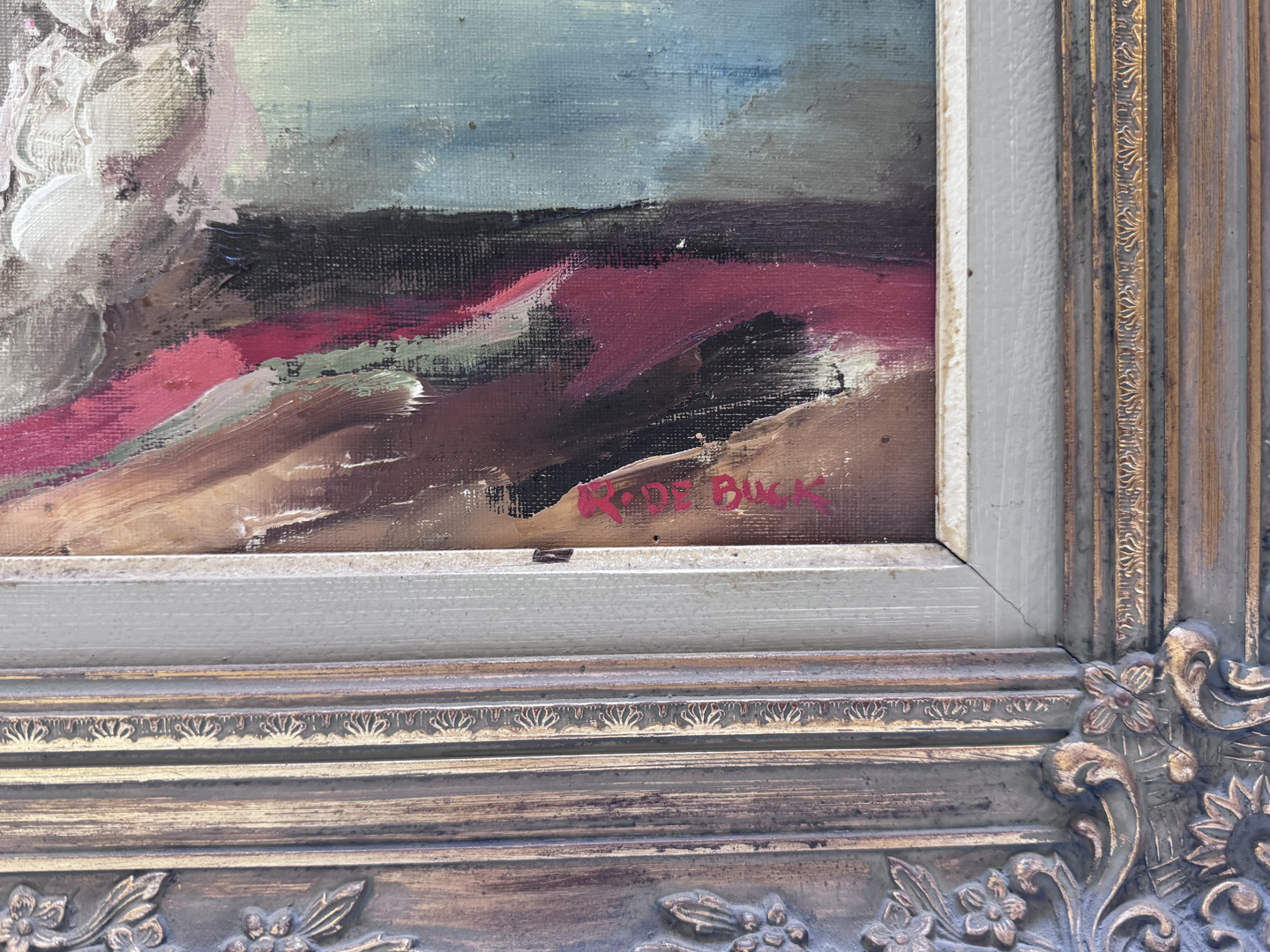 Schilderij olie op doek 'Nature morte aux fleurs' getekend: R. De Buck. Afmetingen: 65x50 en 89x73 cm