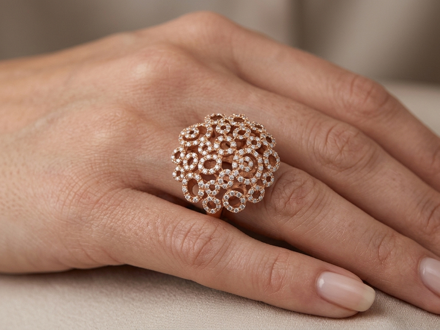 grote fijne ring bezet met 152 witte diamanten briljant geslepen
