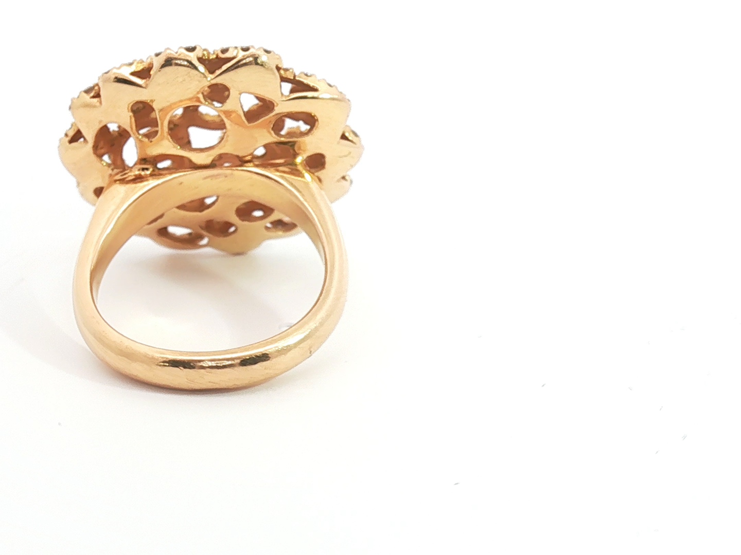 grote fijne ring bezet met 152 witte diamanten briljant geslepen, totaal: 1.50ct, kleur: G-H en zuiverheid: VS. Ingezet in geel goud 18kt (gemerkt 750). Ringmaat: 52-55 en ring diameter: 25mm