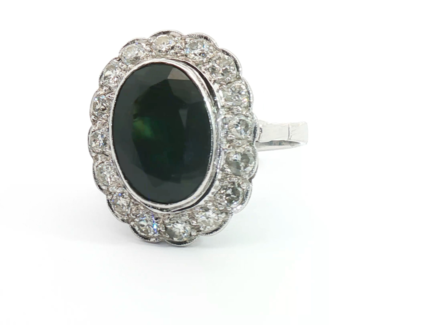 Ring circa 1930 met een mooie saffier, omringd door 16 witte diamanten