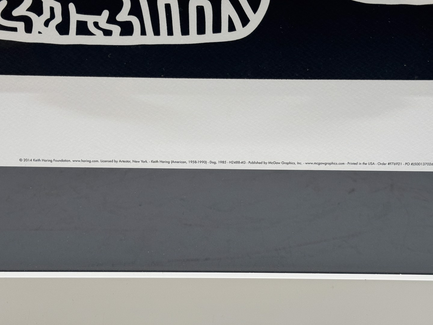 Print Keith Haring, 'Dog' - 1985. Vermeld in boek: Prints of Keith Haring, met inscriptie: Keith Haring foundation - 2014. Afmetingen: 74cm x 60cm en met kader 95cm x 81cm