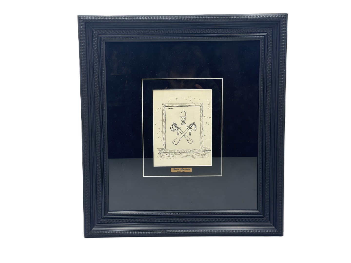 Typografiek naar een werk van René Magritte getekend in de plaat. Afbeelding : 15 x 18 cm Ingelijst : 51.5 x 47 cm
