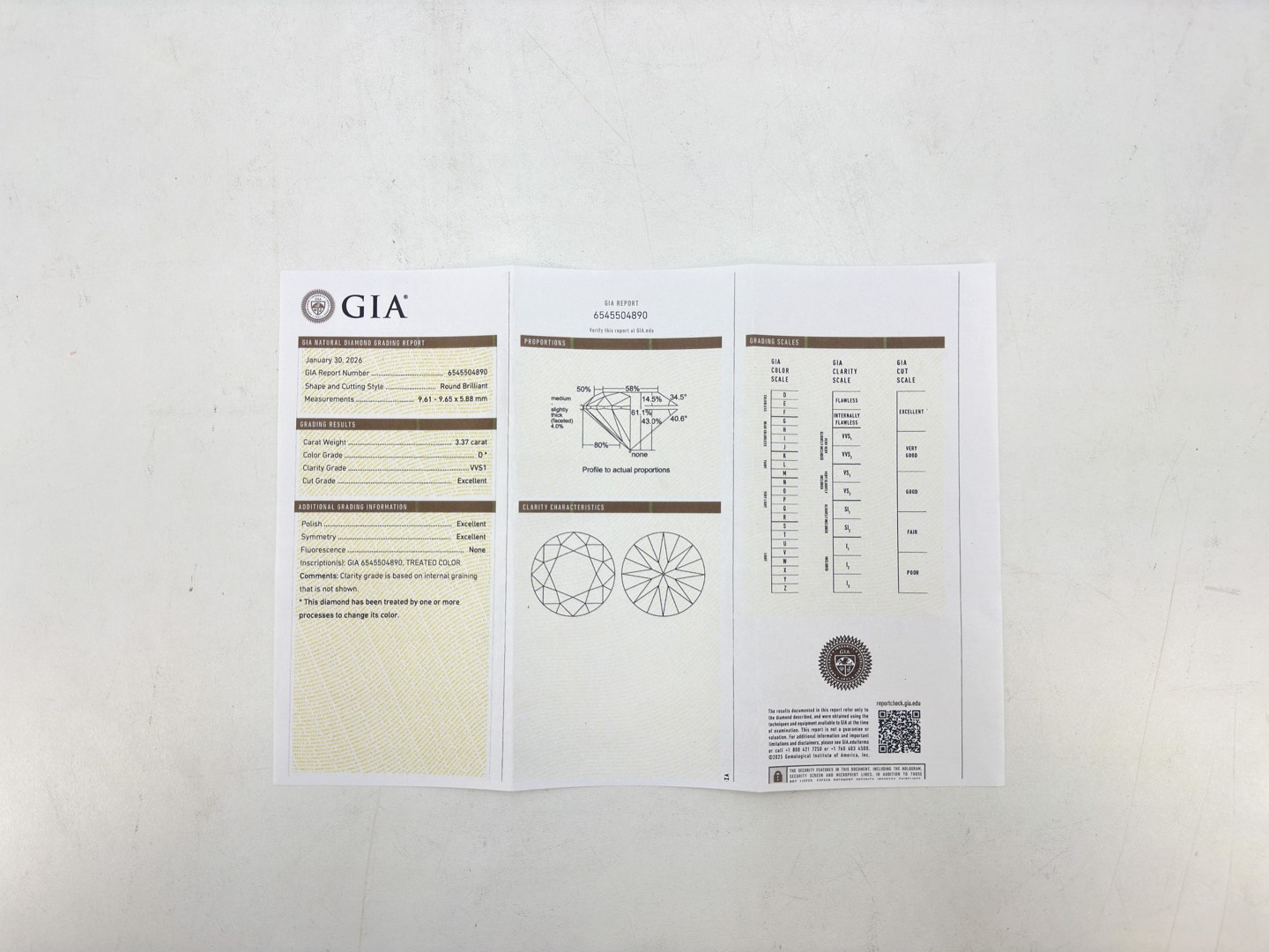 Top kwaliteitsring solitair van 3.37ct met GIA certificaat + laser inscriptie in de diamant, briljant geslepen, kleur: D en zuiverheid: VVS1. Ingezet in wit goud 18kt (gemerkt 750)