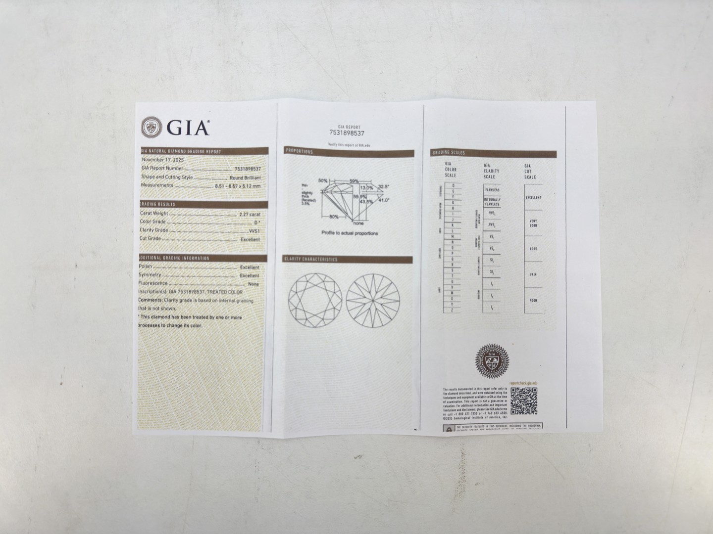 Top kwaliteitsring solitair van 2.27ct met GIA certificaat + laser inscriptie in de diamant, briljant geslepen, kleur: D en zuiverheid: VVS1. Ingezet in wit goud 18kt (gemerkt 750)