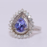 Exclusieve ring bezet met 1 tanzaniet blauw-violet van +- 1.50ct. omringd door 36 briljanten +- 0.72ct.