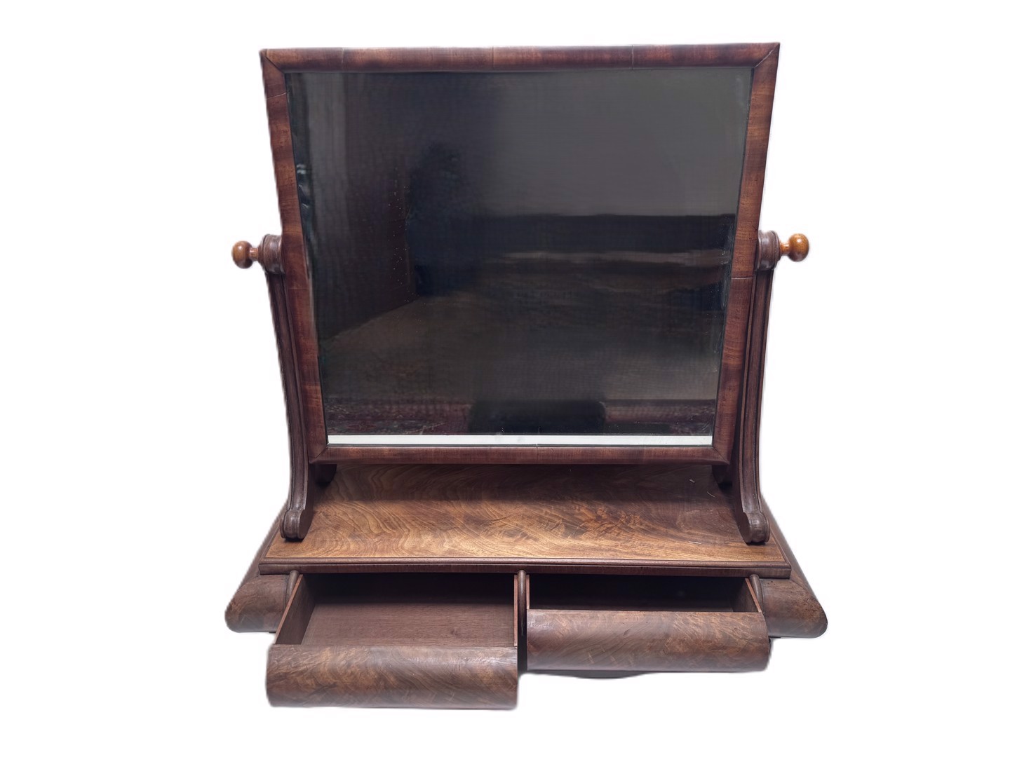 Engelse spiegel-psyché circa 1880 in mahoniehout afm. h. 70 x b. 68 x d. 28 cm.