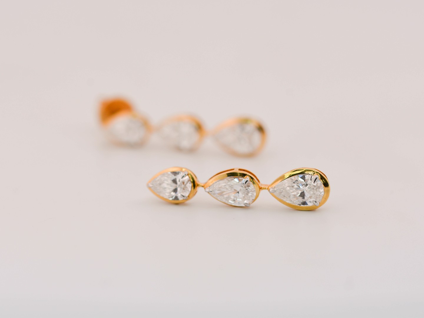 De uitzonderlijke helderheid van VVS-diamanten in combinatie met hun schitterende wit (D–F) geeft deze oorbellen een onvergelijkbare uitstraling. Het warme geelgoud accentueert de luxueuze schittering en creëert een paar juwelen dat tegelijk elegant, krachtig en uiterst verfijnd is.