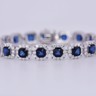 Armband in witgoud (18 kt), bezet met 17 Royal Blue saffieren van samen ca. 20 ct, omringd door 204 briljantgeslepen diamanten met een gezamenlijk gewicht van ca. 7,50 ct, kleur D–F (exceptional white), zuiverheid VS. Lengte: ca. 17,5 cm. Breedte: ca. 9 mm.
