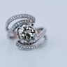De centrale steen wordt omringd door een fonkelende entourage van 70 briljantgeslepen witte diamanten, met een gezamenlijk gewicht van circa 0,20 karaat, van kleur F–G en zuiverheid VS, die het warme gele licht van de solitaire prachtig accentueren.