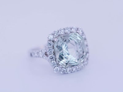 Witgouden Ring met 6,5 ct Prasioliet en 2 ct Diamanten