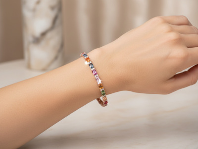 Rainbow Armband met 6 ct Saffieren en 0,50 ct Diamanten