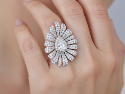 Exclusieve Bi-Color Ring met 3 ct Diamanten – Peervormig Centrum