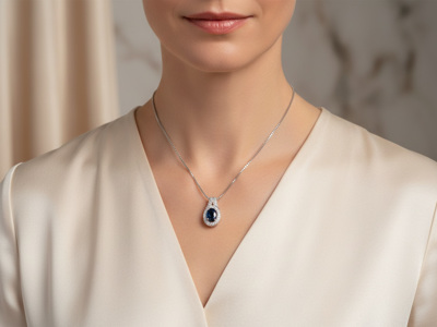Halsketting met Hanger met 0,70 ct London Blue Saffier en 0,26 ct Diamanten