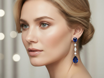 Paar Witgouden Oorbellen met 20 ct Safieren en 1,60 ct Diamanten