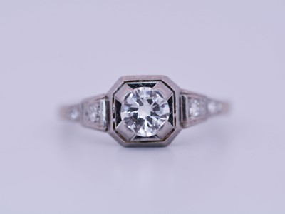 Elegante Deco-Ring met 0,50 ct Briljant en Accenten van Diamant