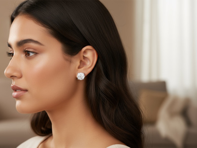 Paar oorbellen illusion setting bezet met 18 briljanten 1.60CT, kleur: F en zuiverheid: VS.