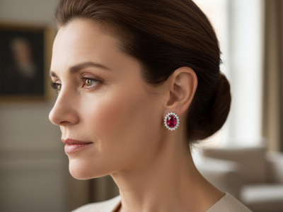 Sublieme oorbellen met 2 ruby's +- 11.00ct. omringd door 36 briljanten +- 1.20ct.