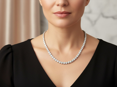 Kwaliteit halsketting -rivière bezet met 95 briljanten in totaal: 22.75ct.